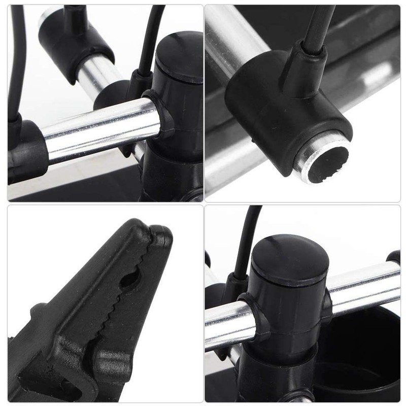 - Seis pequeños clips con varillas flexibles ajustables que se pueden usar para sostener el modelo para una mejor pulverización.Cada clip es extraíble y reposicionable.