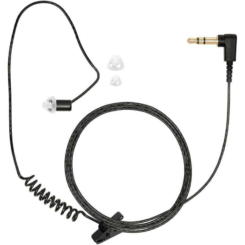 - Includes Covert (Ultra-Thin Wire) Listen Only Earpiece with 3.5mm Right Angle Connector, Metal Clothing Clip, Removable Retainer Earhook to Secure the Wire to the Ear, and 3-Pack Clear Eartips (S, M, L)