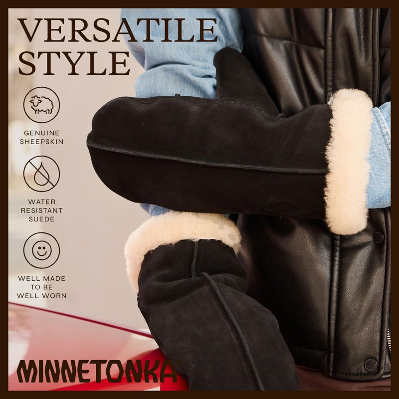 • SOFT AND COMFORTABLE FIT: Super soft and oh-so comfy, these cozy sheepskin lined mittens look just as good they feel with a water resistant suede exterior that protects you from the elements.