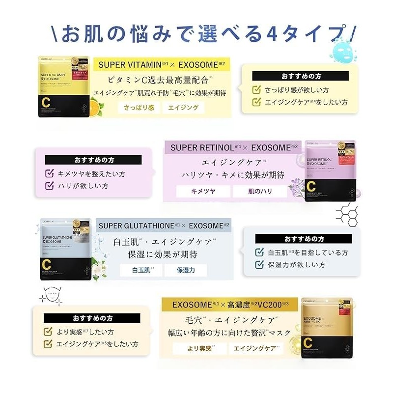 - Whitening Mask, Super Glutathione and Exosome Mask, 30 Pack, Made in Japan, Formulated with Vitamin C, Retinol, Niacinamide and Human Stem Cell Ingredients, High Hydration, Whitening for Sensitive and Dry Skin