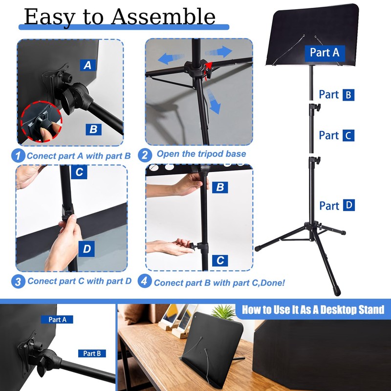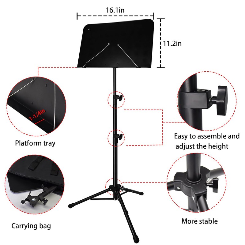 - Portable and Lightweight: The music stand portable come with a carrying bag for easy carrying and storage, and the lightweight and easy detachable design allows you to install quickly and carry it around