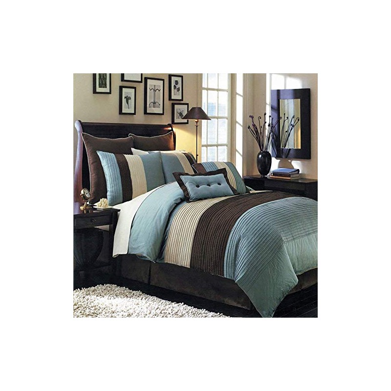 - AQUA BLUE HUDSON COMFORTER SET Is The Perfect Addition to Your Bedroom as The Striped Design Adds Beauty and Grace While The Color Combinations Add a Rich and Cozy Feel. A Perfect Gift To a Loved One!