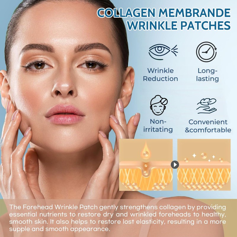 - Efficient wrinkle removal: Say goodbye to wrinkles with our first-class collagen facial patches! These collagen masks are specially formulated to repair wrinkles and fine lines caused by ageing skin, side sleep and even sunburn. They effectively reduce the appearance of fine lines. For deep expression wrinkles on the forehead, choose our collagen wrinkle plasters and enjoy smooth skin in no time!