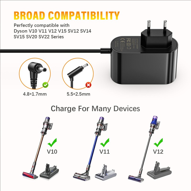 • Ladeger?t f1r Dyson Bietet stabile Stromversorgung und ununterbrochene Leistung, es kann Sie sicher und zuverl?ssig mit Strom versorgen. Ein hochwertiges Stromversorgungsprodukt bietet maximalen Schutz f1r Ihre Ger?te, Ihr Unternehmen, Ihr Zuhause??365 Tage Garantie??
