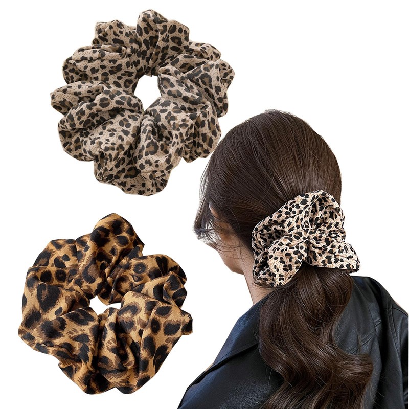 shefun JP217 Scrunchie Silk Hair Rubber Set of 2 Adults Leopard Pattern Silk Rubber Stylish Volume Women's Hair Ornament