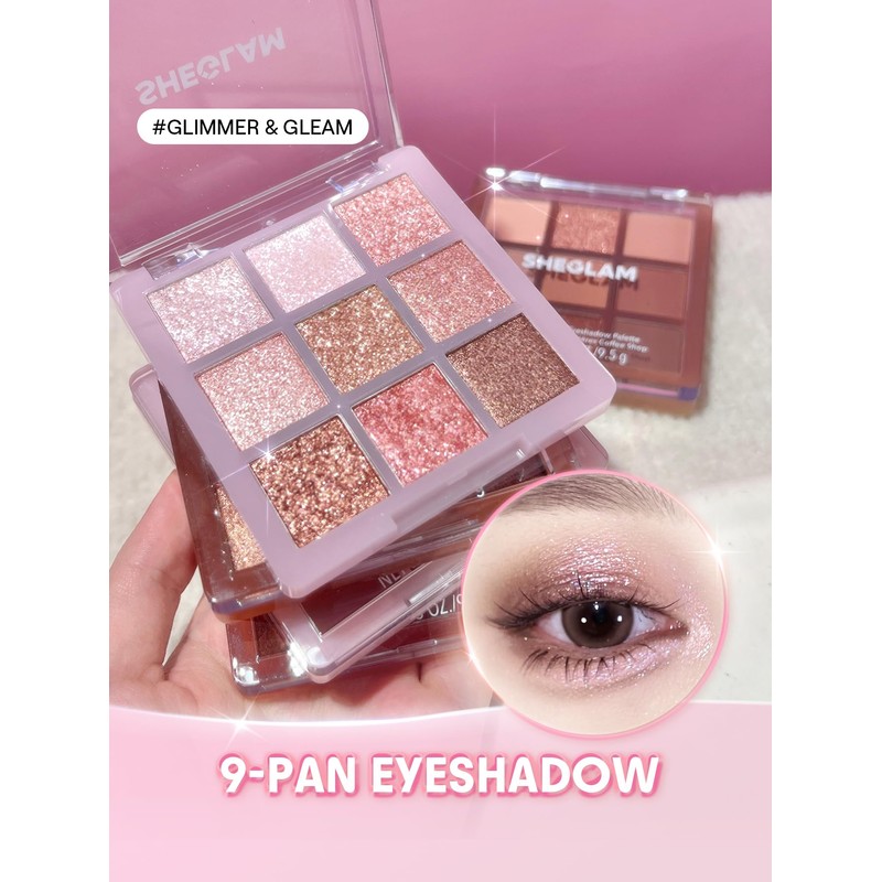 SHEGLAM Eyeshadow Palette 9-Color Ultra-pigmented Shimmer & Matte Shades, Vegan & Cruelty-free-Glimmer & Gleams