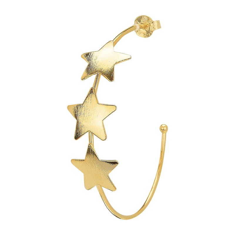 - Metal: Champagne Plated over Brass in Brush Finish. Champagne is a combination of 18k Gold and 18k Rose Gold. The color is a silvery gold with a pinch of pink. Hoops are polished finish and stars are brush finish.