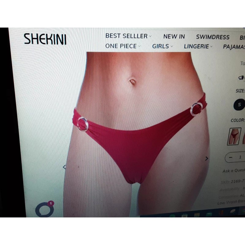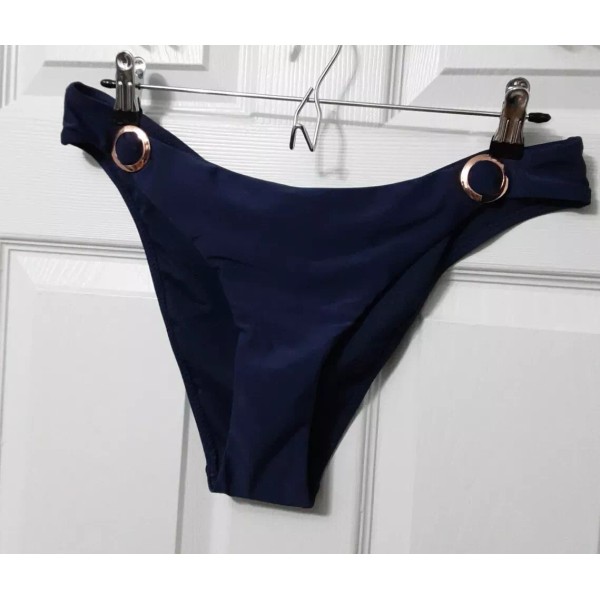 Shekini Low Waist High Cut Ring Sides Bikini Bottoms, bottoms only, new with tags, Navy, size XL. From a smoke free/pet free environment. Thank you for shopping with Read The Ink!