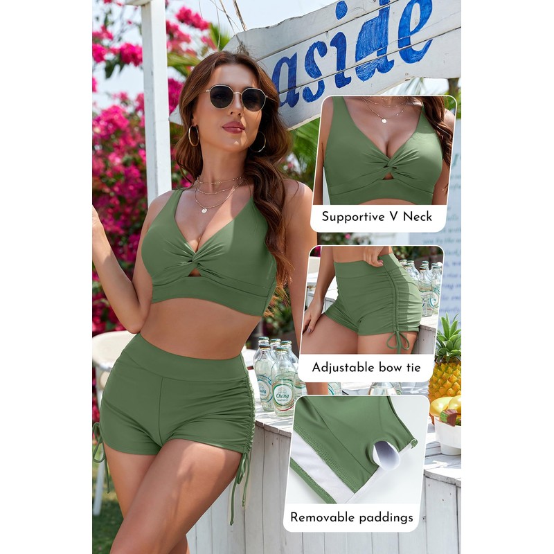 SHEKINI Women's High Waist Bikini Sets Twist Front Bralette Swimsuits Pull-on Bathing Suits (Olive-Green, Small)