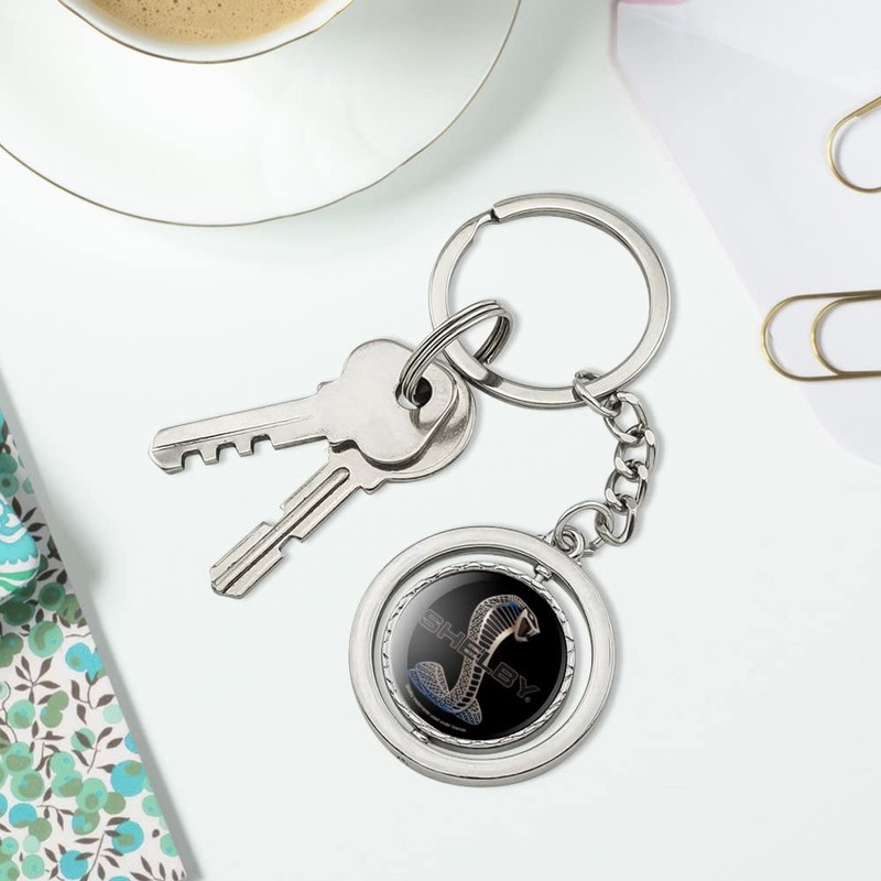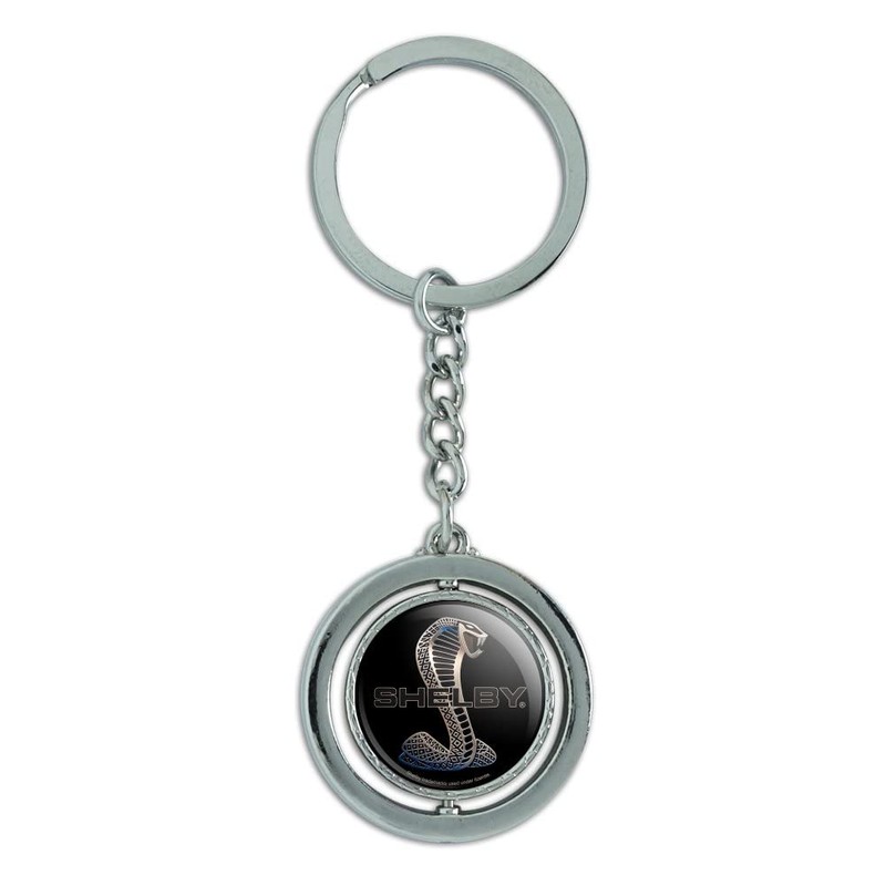 Shelby Cobra Logo Keychain Spinning Round Chrome Plated Metal