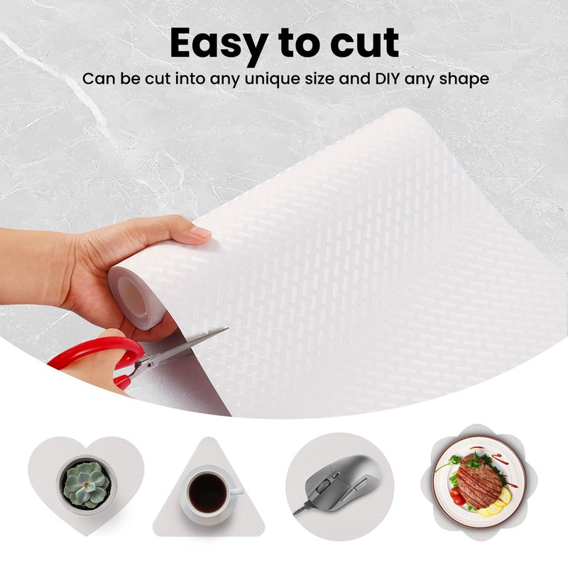 - Shelf Liner-【Non-Adhesive & Non-slip】The non adhesive drawer liner mat foamed one side surface shows clear crossed stripe textured, the other side surface is smooth and non sticky, which not only can prevent slippage, but also can prevent stick. Good tactile elasticity, comfortable touch, soft and strong surface, good anti-slip effect, easy to cut, easy to replace,strong adsorption force, the cupboard liner surface ribbed pattern, prevent things from falling to ensure the safety of your dishes,glassware and other items in place.