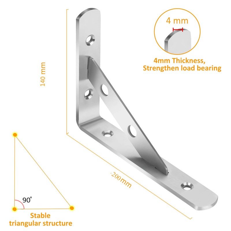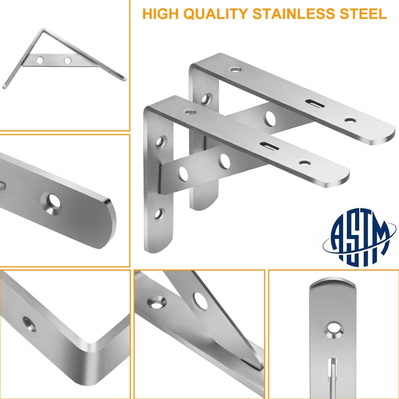 - Material: Steel l brackets is stainless steel brushed finish no worry about daily scratches, corrosion and tarnishing, heavy duty, solid, sturdy, waterproof and rustproof