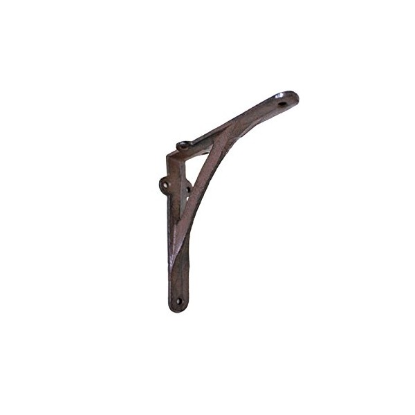 Rustic cast iron shelf support in antique brown. The deliberate irregularities of the surface give the item a rustic character. There are 3 holes for the wall and 3 for the shelf (mounting material is not included). This item has been hand cast according to centuries-old artisanal tradition.