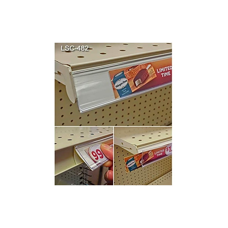 • Details - Pack includes 100 clear label and sign holder channel strips. Each unit measures exactly 47-5/8" L x 1-7/32" H, which allows for them to easily snap into standard 1.25" H gondola shelving price channels. Made for 48" L shelves.