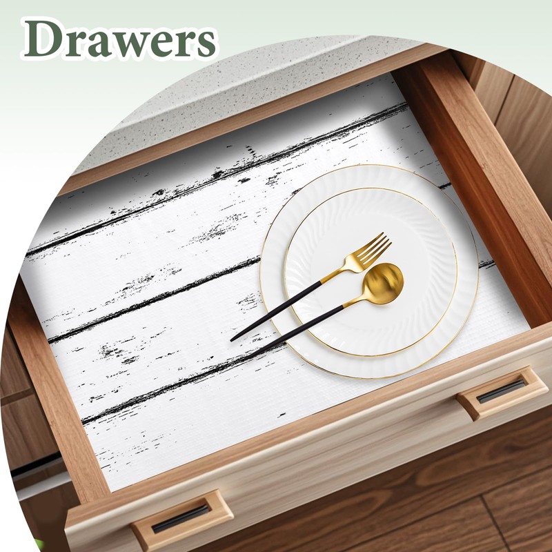 - Non-Slip No Edge Warping: Crafted from double-layer PVC, our anti-slip drawer liners are sturdy and safe. The thick material prevents curling, while being waterproof and scratch-resistant. Health and safety are our top priority