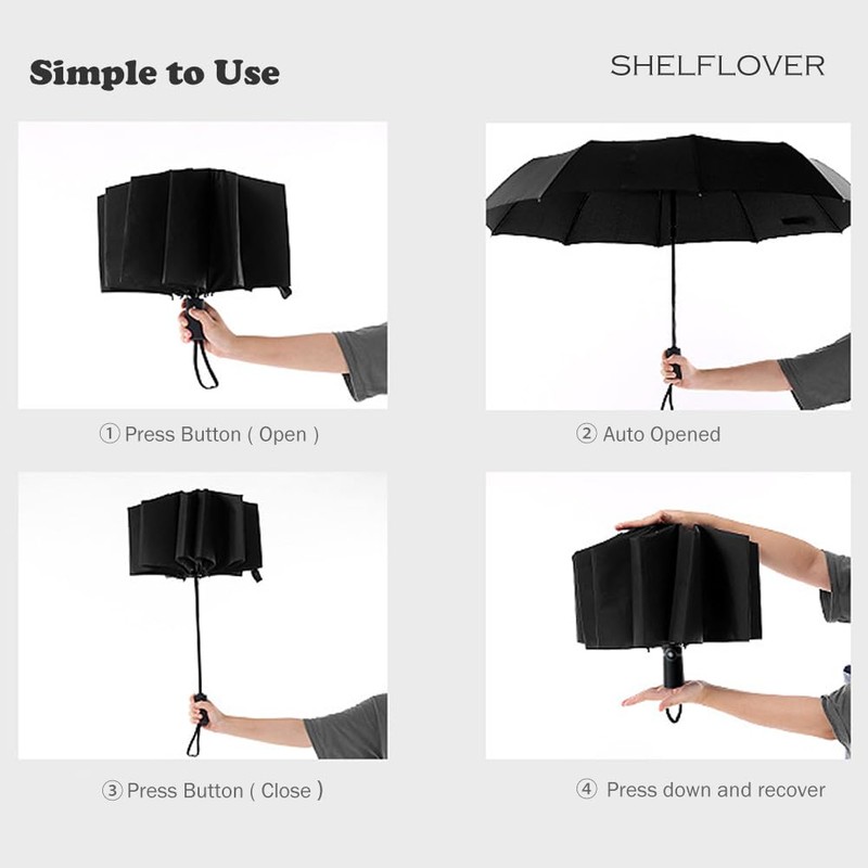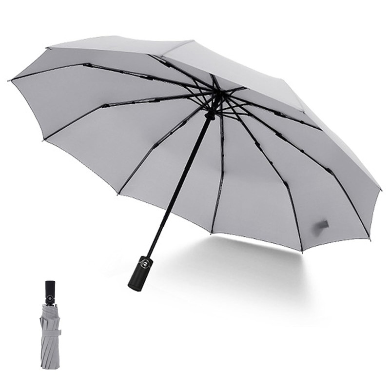 SHELFLOVER Folding Umbrella, Strong Compact Umbrella 10 RIBS, Wind & Rain Umbrellas Outdoor Essential, Auto Open&Close, Grey