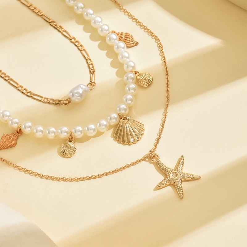 - SHELL NECKLACE: Embrace seaside vibes with our shell necklace featuring starfish and pearl accents, perfect for summer adventures.