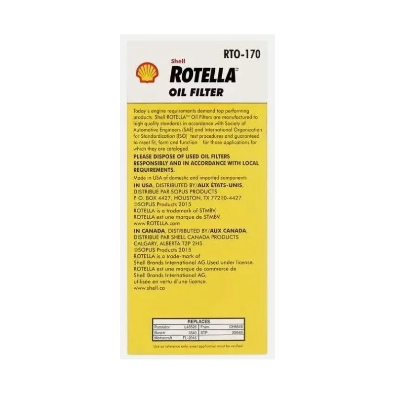 Shell Rotella Oil Filter RTO-170, Replaces: Fram CH9549, STP S9549, Bosch 3540
