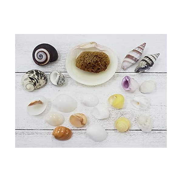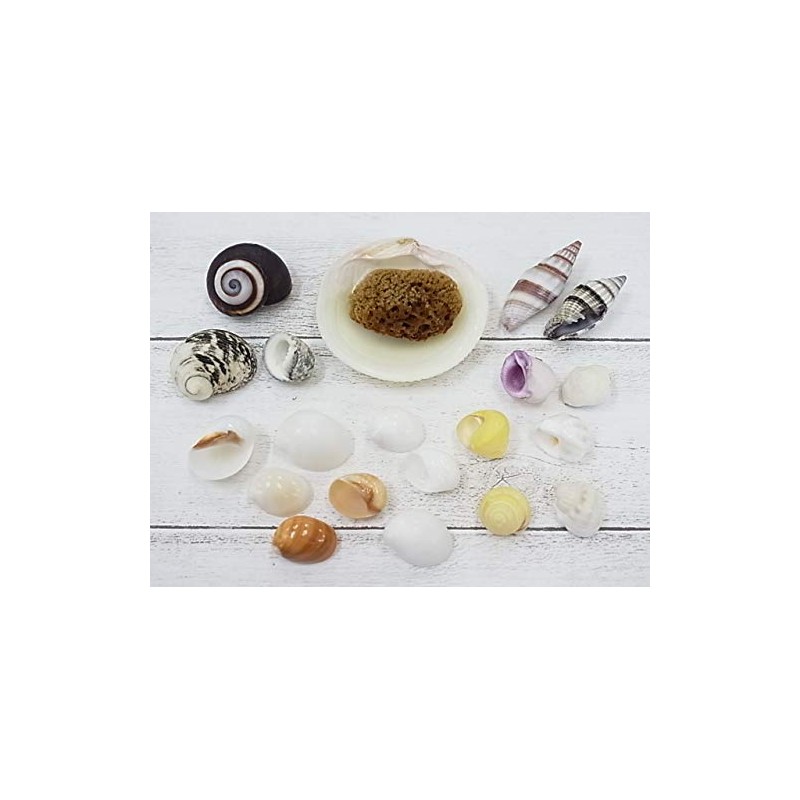 [Shell Wholesaler] Sea Shell Set, Hermit Crab House, Approx. 0.6 - 1.6 inches (1.5 - 4.0 cm), Approx. 19 Pieces; Bonus: Natural Sea Sponge (Perfect for Water Retention) and Bivalves (Dishes for
