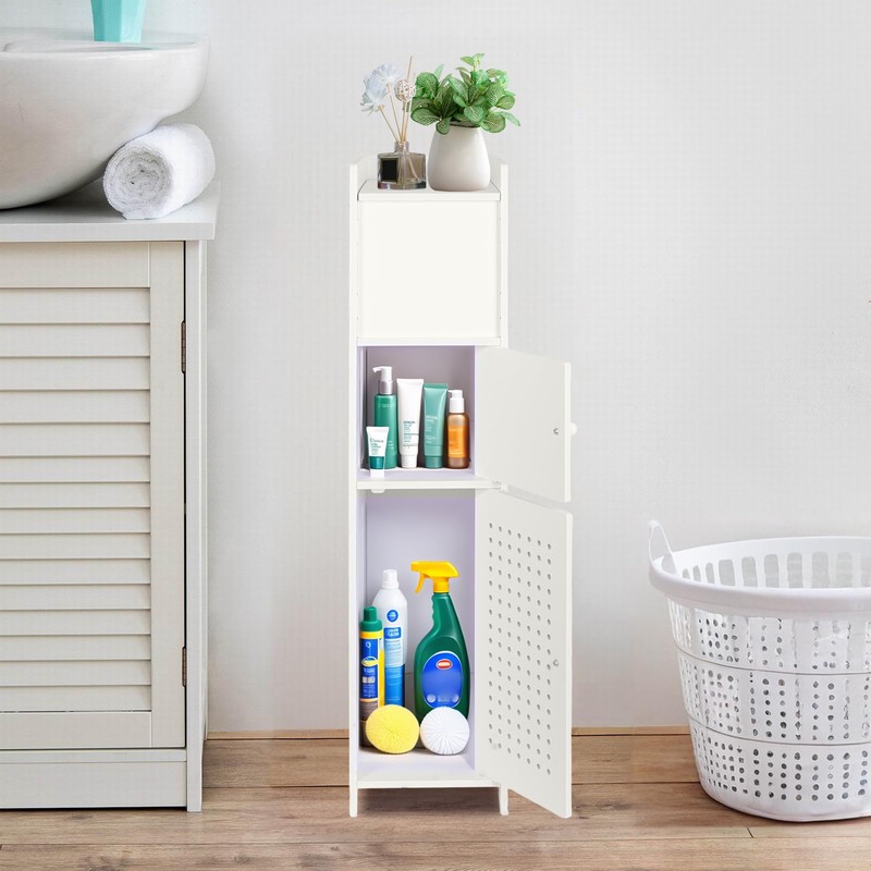 - Perfect Size for Narrow Space: Dimensions: 28.7'' (H) X 6.7'' (W) X 12.6''(D). Suitable for use in small space to meet all your storage needs in bathroom, home, restroom, bedroom, kitchen, etc. It can accommodate small plant, candles, wipes, aromatherapy, shampoo, cell phone, etc. Great to organize any other bathroom product