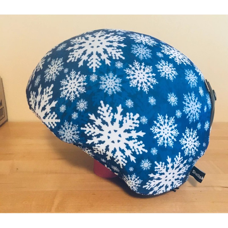 Shellskin.com Ski & Sport Helmet cover by Shellskin. Royal/White Snowflake print Spandx.1 Size