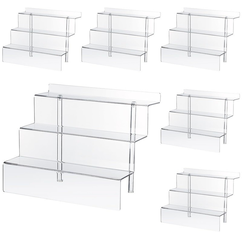 Shellwei 6 Pcs Acrylic Riser 12 Inch Display Stand 3 Tier Shelf Riser Perfume Organizer Large Cupcake Stand Cologne Display Stand Desserts Holder(Clear)