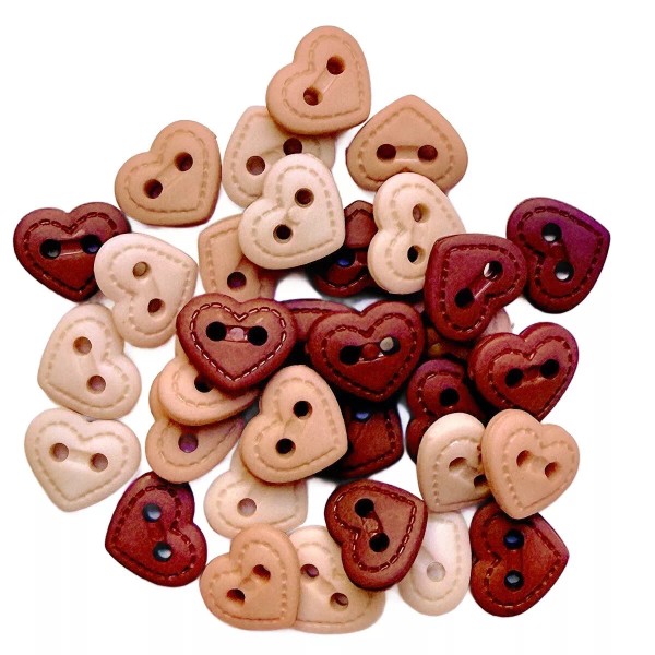 Shelly's Buttons and More Heart Buttons - Tan Brown Doll- Quilt Sewing 2 hole Buttons- Shelly's Buttons