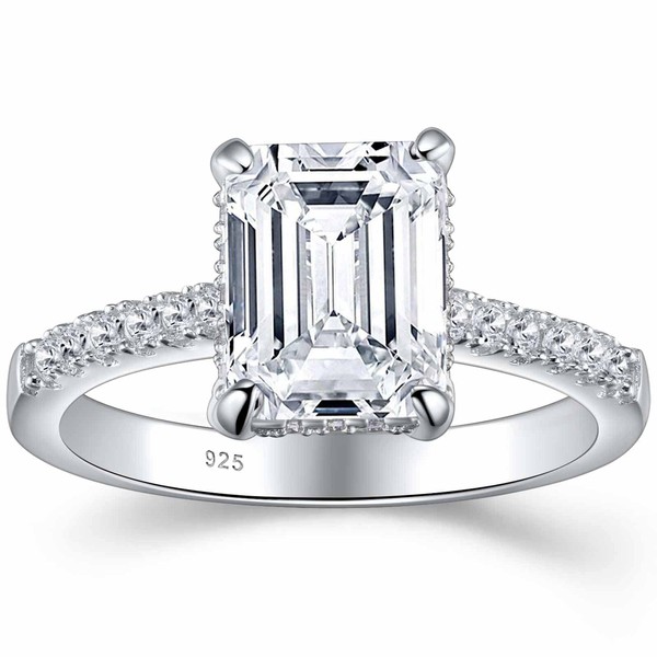 SHELOVES 3 Ct Emerald Cut Engagement Rings 5A CZ Fake Diamond Travel Engagement Ring 925 Sterling Silver Rings for Women Sz Y