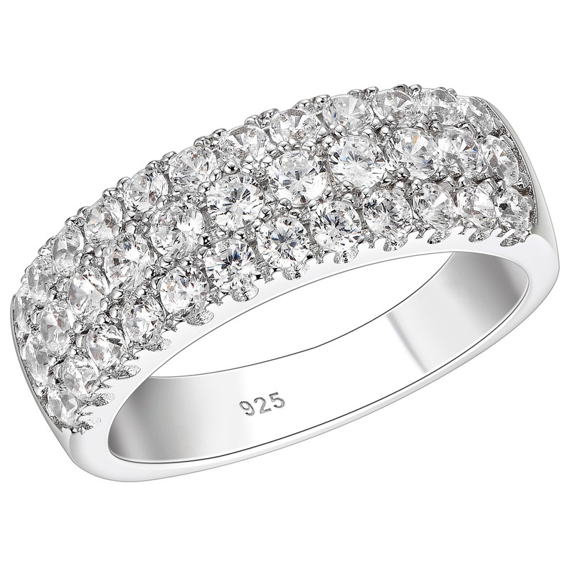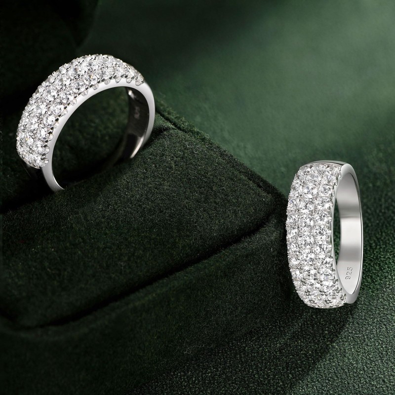 - This eternity ring features three rows of round cut cz diamonds.This simple and elegant design style adds the look of luxury to your outfit.A wonderful choice as a wedding band,promise,engagement,anniversary ring.It can stack or wear on its own.