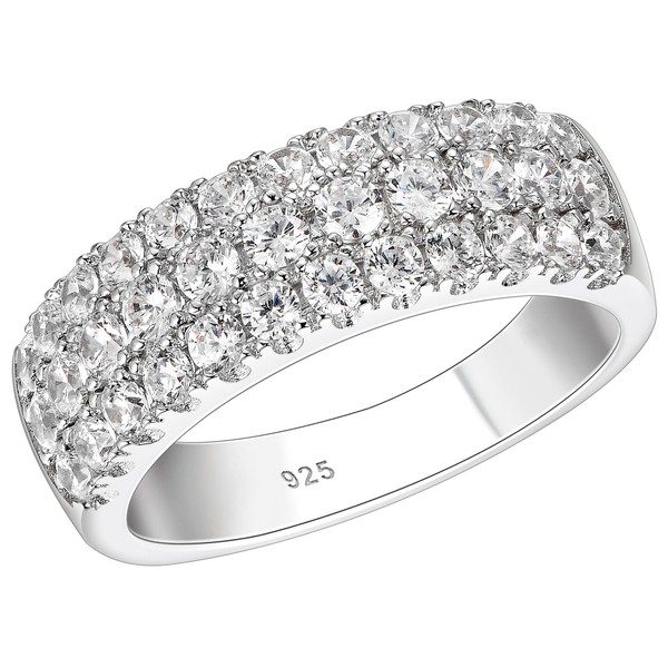 SHELOVES Three Row Eternity Ring for Women Round Cut CZ Sterling Silver Wedding Bands Rings for Her Size 5