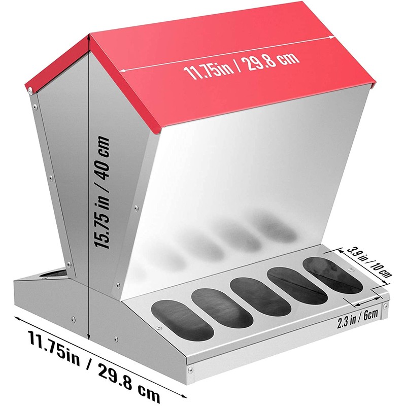 - Protect Your Feed: This rat proof chicken feeder is designed to prevent your poultry from tossing seed out; Chicken feeder trough includes an attachable awning; Some assembly required, screws included