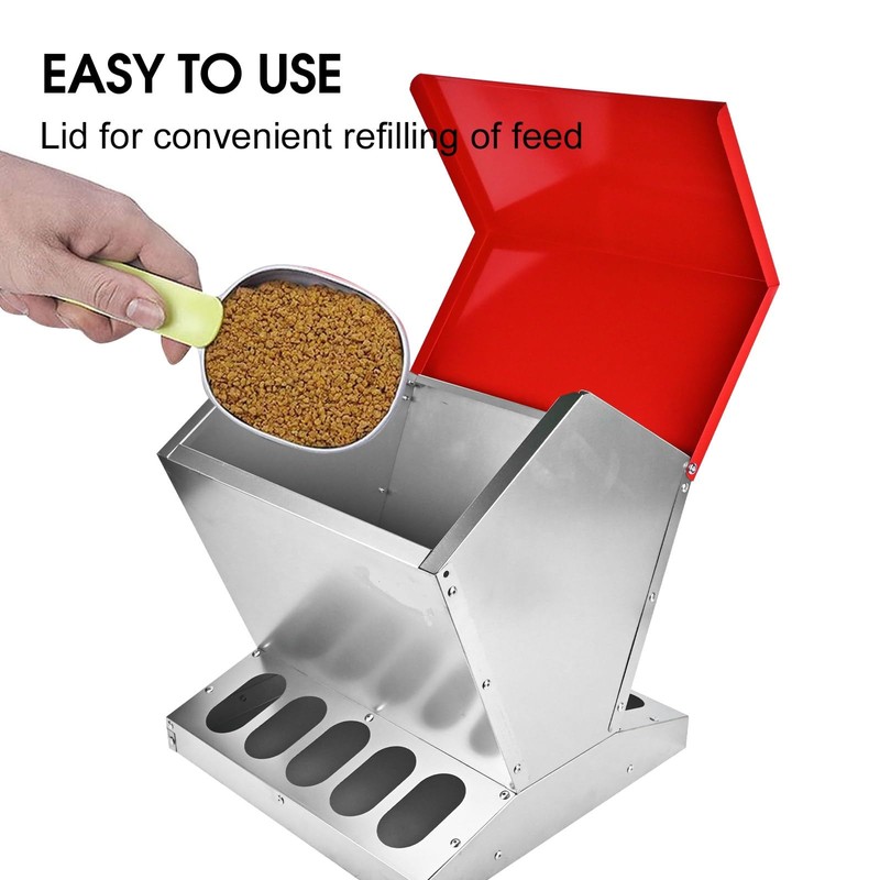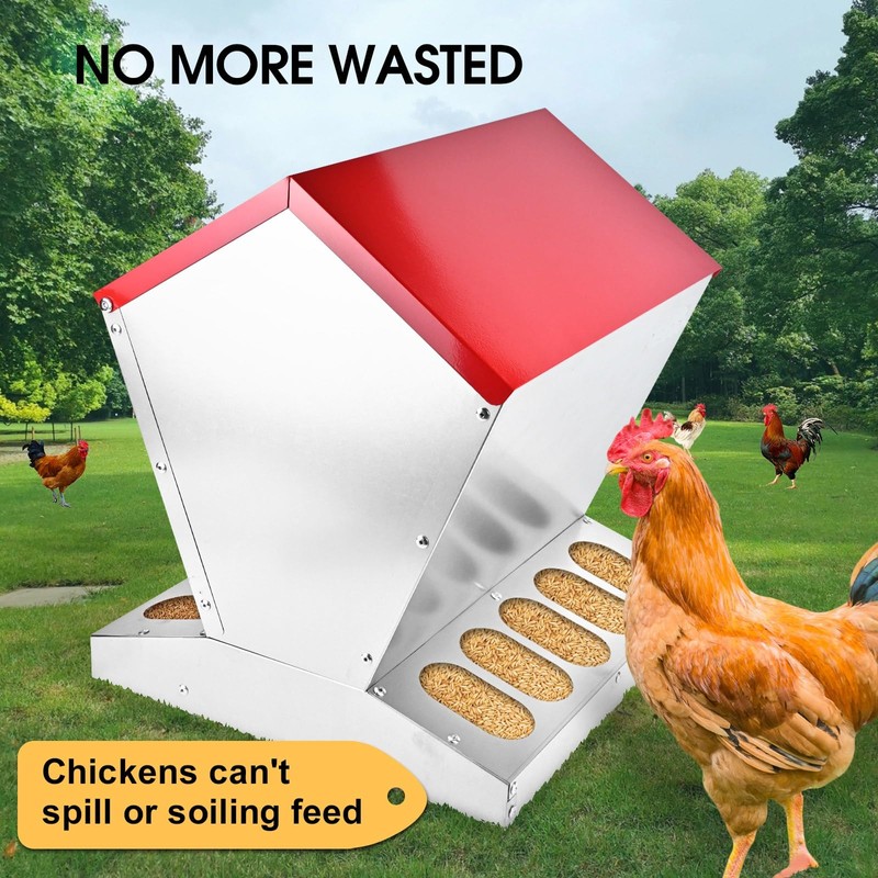 - Time Saving :There is an openable lid that comes with our poultry feeder; you open it when you want to refill the feed, which is easy and not wasting much time. The openable lid is also convenient for you to clean up the chicken feeder. There is no need to rush home to feed your hens anymore with our chicken feeder.
