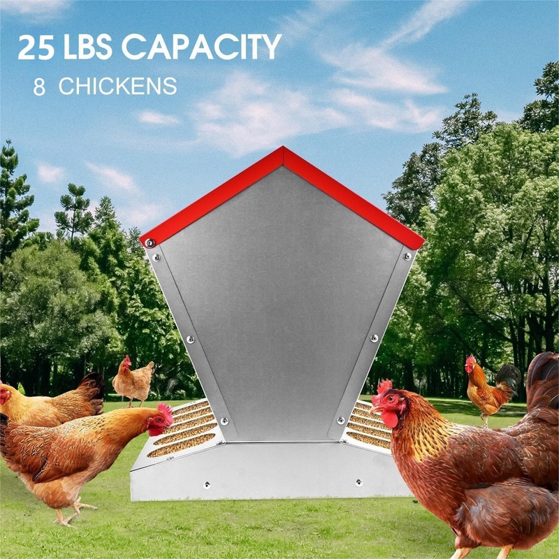 - Galvanized Steel Paint: Our chicken coop feeder is constructed of galvanized steel finish that is water-resistant and can be lasting for a long time in outdoor weather no matter if it's scorching sun, a light rainstorm, or snowfall. There is no need to worry about this chicken coop feeder rusting and crumbling after extended outdoor use.