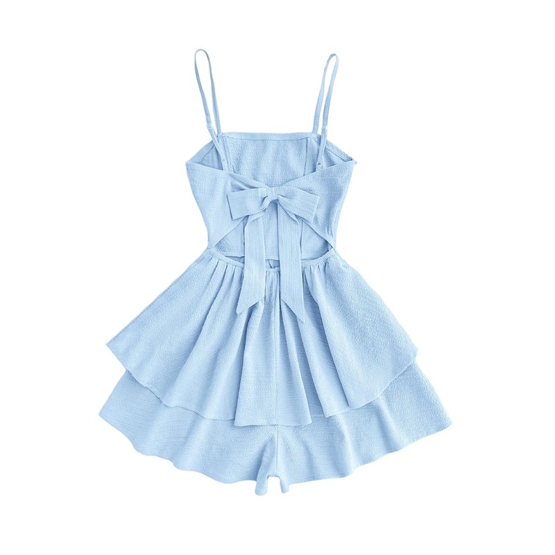 • Features: Summer spaghetti strap romper for teen girls, tie back bowknot, sleeveless, high-waisted, layered ruffle, solid color, sleeveless, one-piece short jumpsuit, cute summer clothes