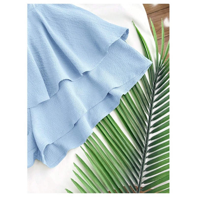SHENHE Girl's Summer Romper Spaghetti Strap Tie Back Bow Layered Ruffle Boho Short Jumpsuit Blue 13Y
