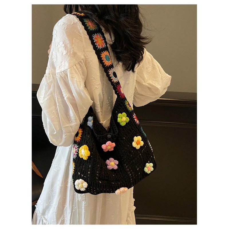 - Fabric: The crochet construction gives it a breathable, lightweight feel, ideal for carrying everyday essentials