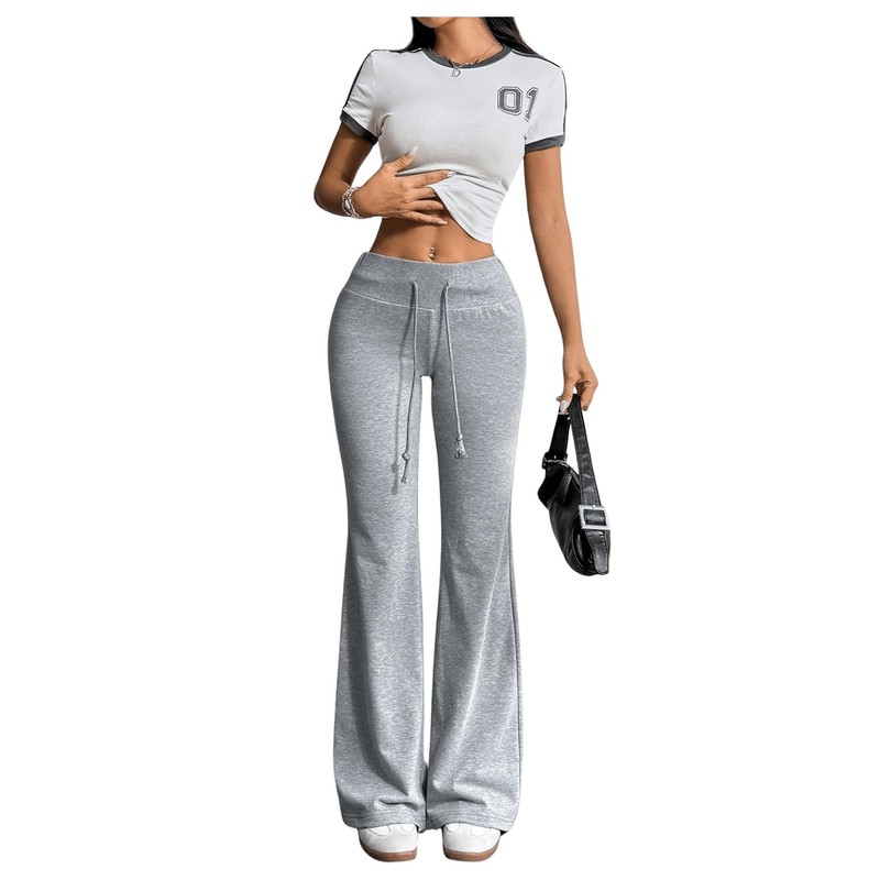 - Flare leg design and drawstring detailing for a unique and casual silhouette
