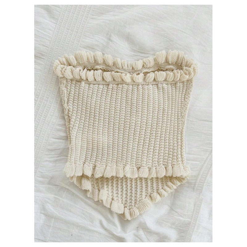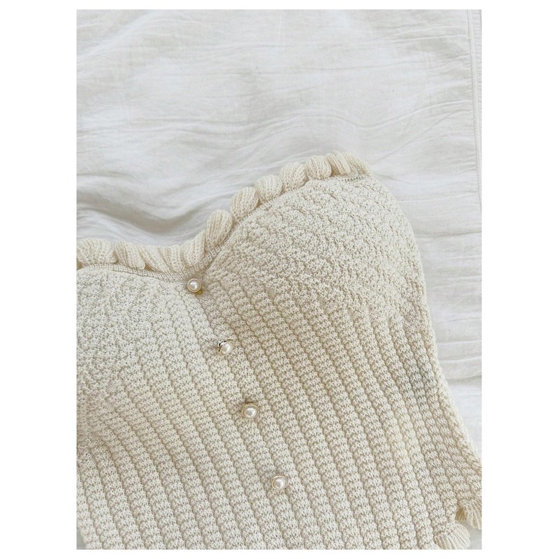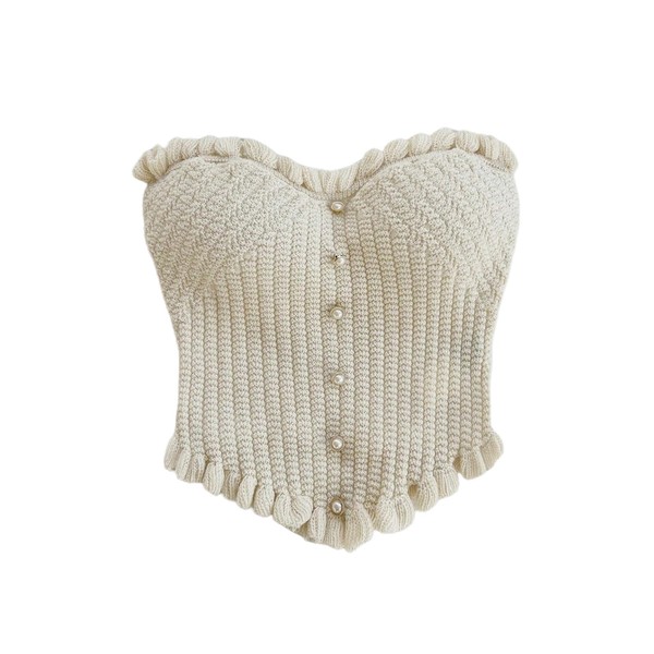 - Features: Summer knit tube top for women, faux pearls button decor, frilly edges, strapless, sleeveless, asymmetrical hem, slim-fitted silhouette, vacation travel cute bandeau top