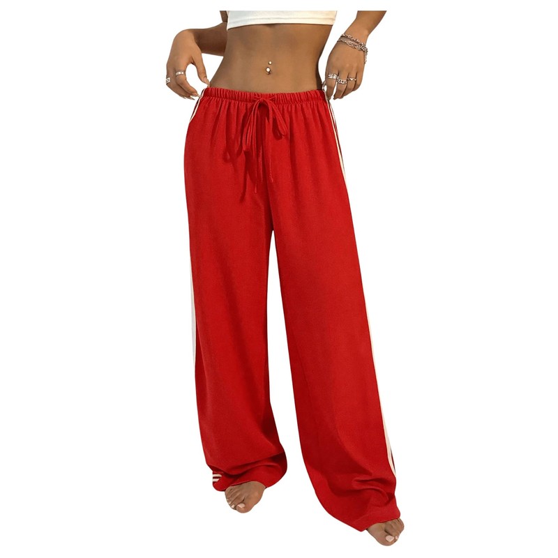 - Features: low rise sweatpants, striped trim, drawstring waist, wide leg, loose fit, casual pants