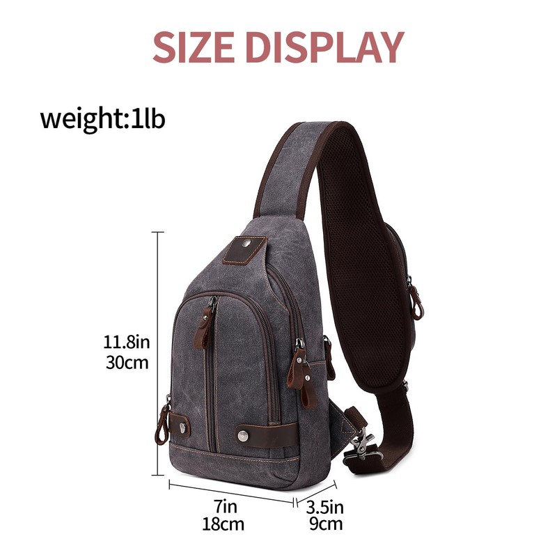 - 【Dimension】:The sling bag strike the right balance between size and functionality. Size 7 x 3.5 x 11.8 inches. Looks not big but you can put lots of stuff, including cameras, chargers, and various electronics and other.