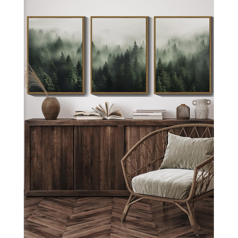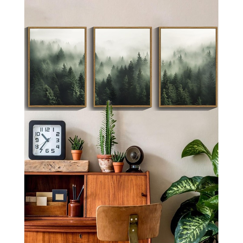 - Ready to Hang - 11"x14", Set of 3. Each forest painting wall art is equipped with traceless nails, and the frame has grooves that can be directly hooked and hung.