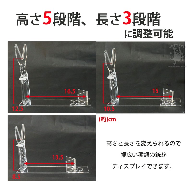 SHENKEL Adjustable Hand Gun Rack Gun Stand Assembly with Cushion Rubber Clear