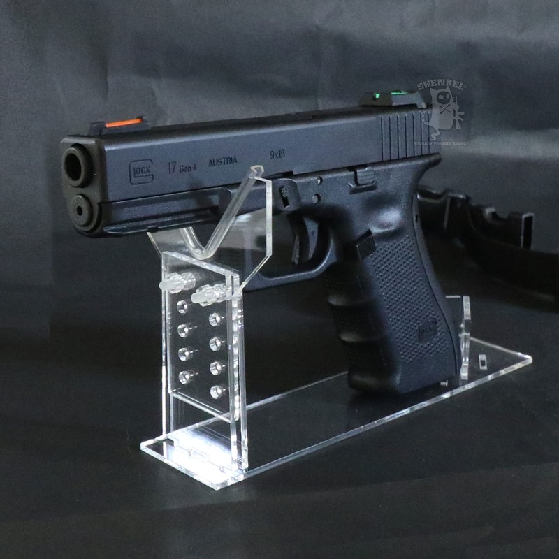 - Acrylic clear stand makes your gun look great The assembly screws are also transparent so they are discreet