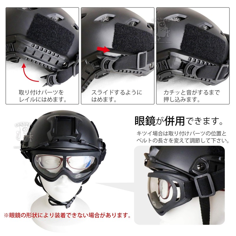 - Lightweight, high-strength combat goggles, GX-500 type goggles, helmet rail attachment
