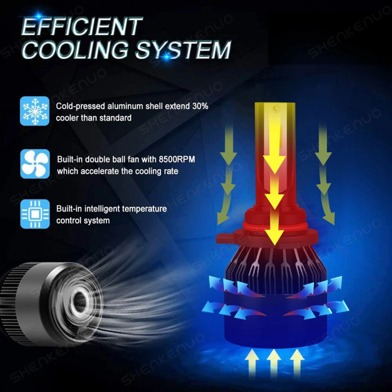 5.All-in-one heat conduction+high speed mute fan system keep the light bulb in appropriate working temperature