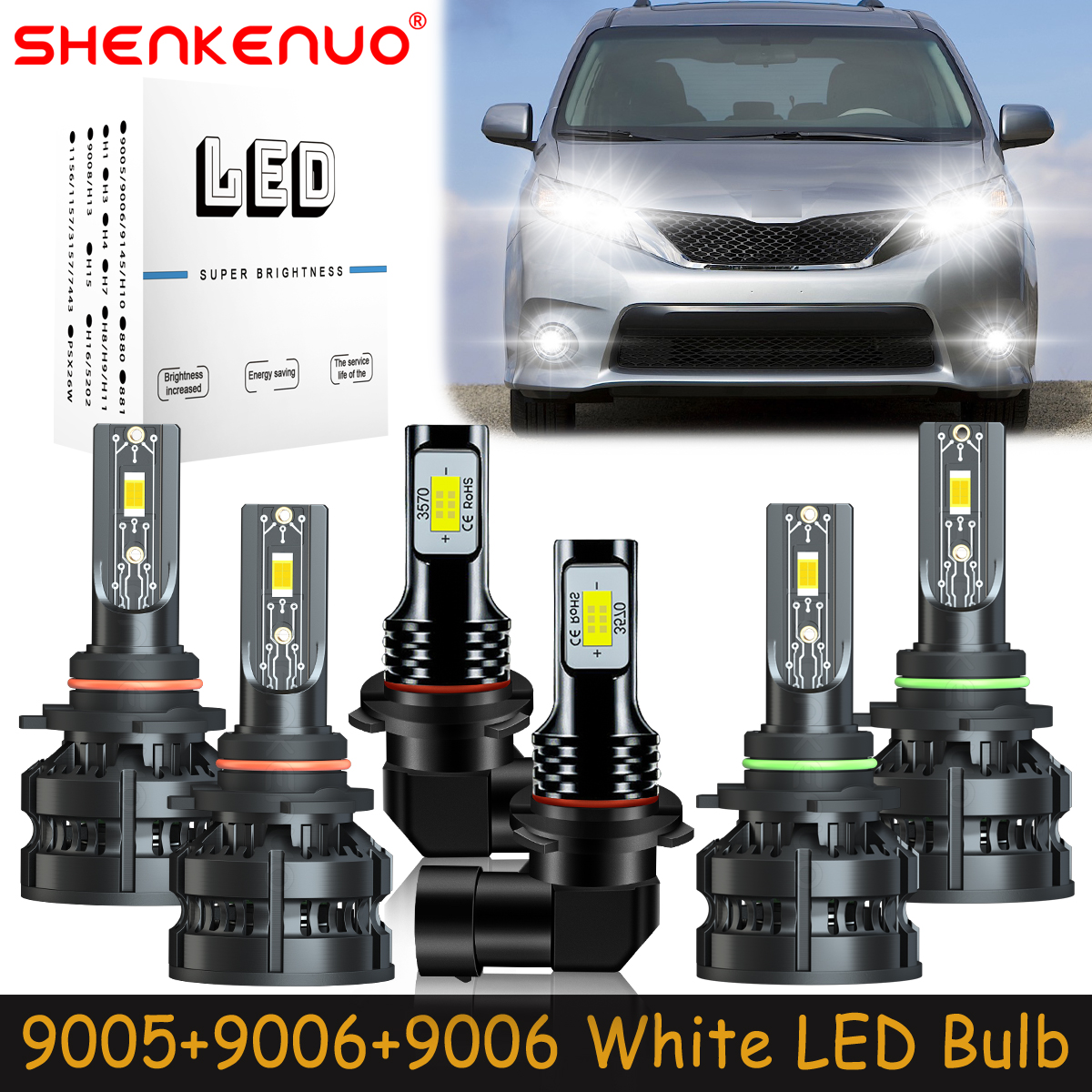SHENKENUO For Toyota Sienna 2006-2010 6000K 6X LED Headlights High Low + Fog Light Bulb Z8