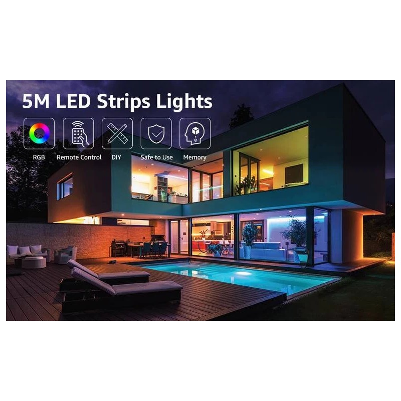 SHENKENUO New LED Strip Lights 16.4ft Music Sync 2835 RGB Room Light with IR Remote