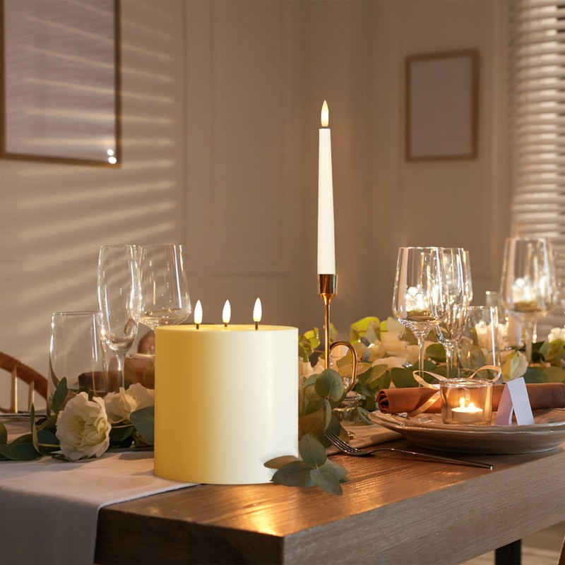 - Efecto de llama 3D ultra realista: nuestras velas extra grandes sin llama con 3 mechas emplean tecnología avanzada de parpadeo para replicar el movimiento auténtico de la vela. La luz LED cálida es perfecta para emitir una luz natural y cálida, creando un ambiente envolvente para el hogar y la boda.