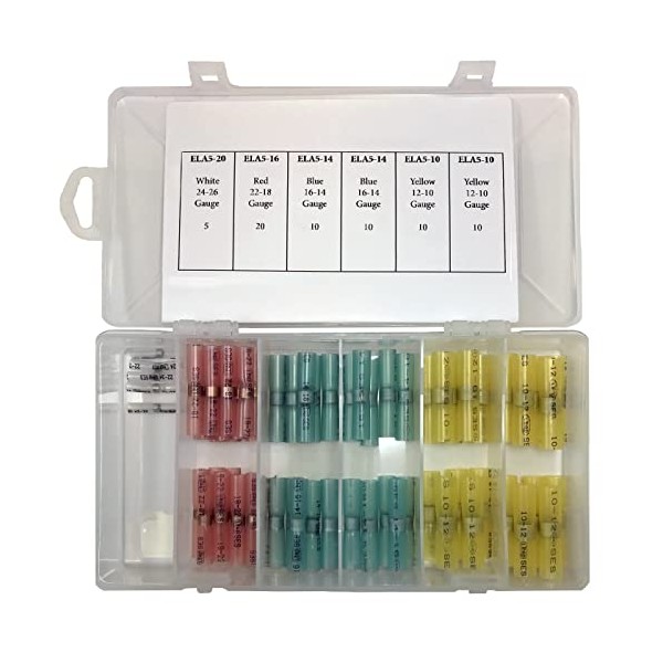Sherco-Auto 65 Pieces Elektralink Heat Shrink Sealed Solder Butt Splice Connector Assortment Kit - 4 Sizes