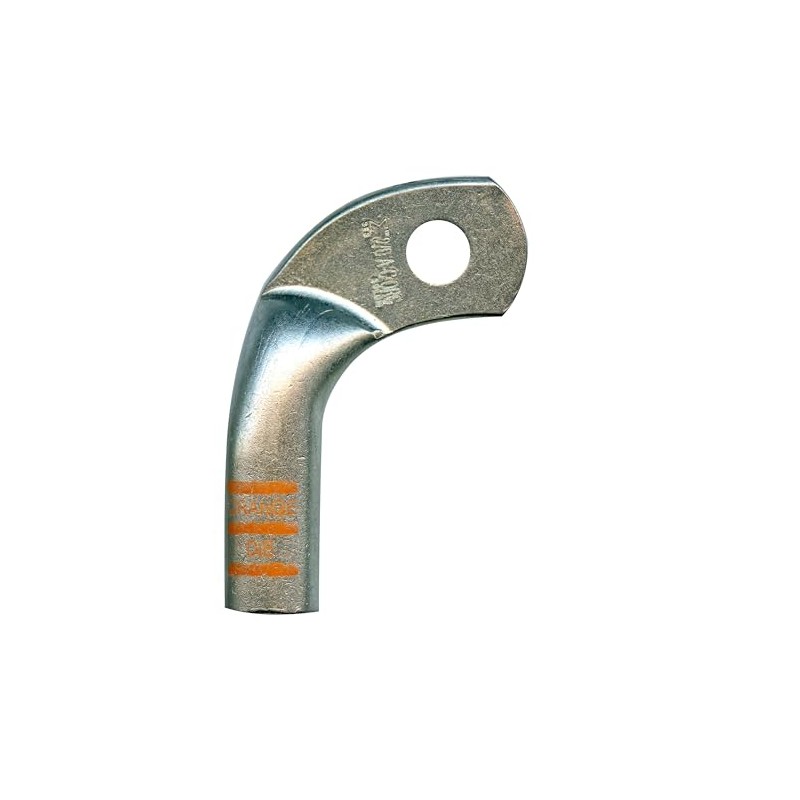 - Mega HD Copper Ring Connector Lug - Right Elbow 2/0 AWG 3/8" Stud Orange - 5 Pack